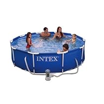 Intex 10' X 30" Metal Frame Pool Set w/ 530gph Filter Pump Intex 56998E. Not too big, and yet big enough for some series summer fun.Packaged with a 530gph filter pump, and a patch kit. This 10' x 30" Intex Metal Frame is the perfect starter pool for a family of 4 with small kids Made of Vinyl; Heavy-Duty Vinyl Liner; Multi-Layer Wall Construction Assembly Required; Instructional DVD